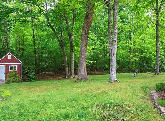 Get away from it all and relax at your private and peaceful retreat on a 1.22 acre lot! Listen to the birds, watch the deer and enjoy the mature plantings and beautiful perennials from the covered deck. Step inside to a lovely colonial with neutral decor, in move-in condition. Kitchen has tile backsplash, SS appliances, a pantry, and an eat-in area that overlooks the park-like yard. Formal dining area (would also make a nice office or sitting room). Large, open family room radiates warmth; great family space with brick wood-burning fireplace. Pretty master bedroom with generous walk-in closet w/shelving and an attached full bath w/tiled floor and linen closet. 2 more nice bedrooms up, both with nice closets plus another full bath. Utility room has plenty of room for laundry needs and storage. Low-maintenance vinyl siding and whole-house GENERATOR are added features. Beautiful, wooded lot is deep and gives you tremendous privacy. There's a park bench to take it all in, as well as a cleared area with firepit. A detached workshop provides lots of extra storage and work space. Enjoy private, peaceful country living just minutes from major roads, shopping and dining. Don't miss it!
