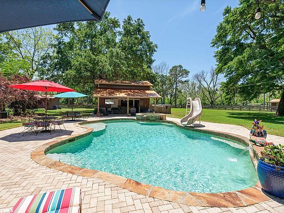 This "must see" property is a destination not to be missed! The updated home sits on just over 11 acres of land surrounded by beautiful oak and pecan trees. Pull inside your fully gated property with electric entry to your porte cochere and step inside, you'll love the large great room and open layout. The gourmet kitchen with large island offers plenty of breakfast bar seating with space for your dining table too. It's all open to your family room with a gas log fireplace and beautiful bay window overlooking the front of the property. The primary suite is a fantastic size with a cozy seating area and spacious bathroom. The 2 guest rooms also are a nice size and separate from the primary. Ideal for your man cave or playroom, off the kitchen hall is a large bonus room with a closet offering an abundance of storage space! Outside though- this property has so much to offer! Starting with the screened porch, heated gunite hot tub and pool, and 10x10 tree house (with power). Perfect for entertaining is a 2 story pool house with reclaimed wood, leathered granite countertops, a large kitchen sink, and full bathroom. Above is plenty of storage space. At the end of the driveway is a car port and large room for all your lawn equipment and tools. Further back on the property is another barn that has been partially enclosed for a climate controlled recreation space. Behind that you'll notice a place perfect for parking your RV with hookups for that as well. Last, but certainly not least is a 2 stall barn and paddock for your horses! You must see this one in person to grasp the uniqueness and beauty of the property! Call now for more information! All updates per the seller. Listing company makes no representation as to accuracy of square footage; buyer to verify