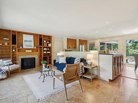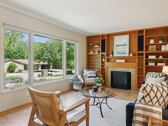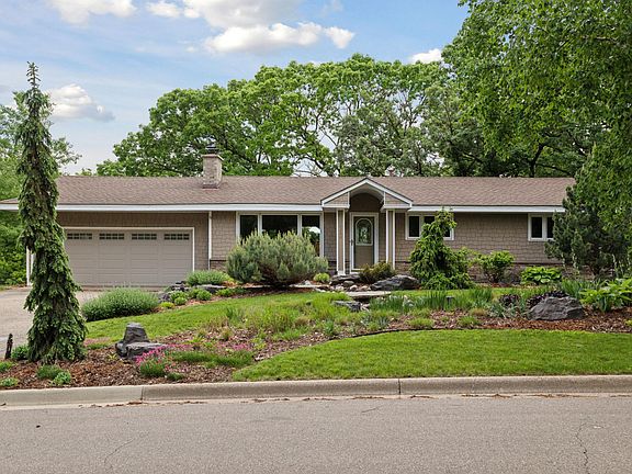 Nestled on a picturesque lot high above Oak Shores pond and park, this beautiful walk-out rambler has breathtaking landscaping in front and a native wildflower backyard. It’s your cabin in the city, with a large mosquito-free sleeping and dining screened porch up in the canopy of oak trees. Wildlife like deer, foxes, egrets, ducks, and owls in the backyard. The open plan has large windows with an eat-in informal dining/kitchen with an induction range. Newer appliances, built-in china cabinet. Corian countertops and 2 sinks. Main floor has 3 bedrooms and full Moroccan-inspired bath with walk-in shower and deep Jacuzzi, both overlooking the pond. Fully finished walk-out lower level, remodeled in 2018, has large laundry room with plenty of storage, large bedroom, ¾ bath, carpeted family room. High efficiency gas furnace, humidifier, UV air purification. Two woodburning brick fireplaces. Two-car insulated garage with metered EV L2 plug-in. One block from Crystal Lake.