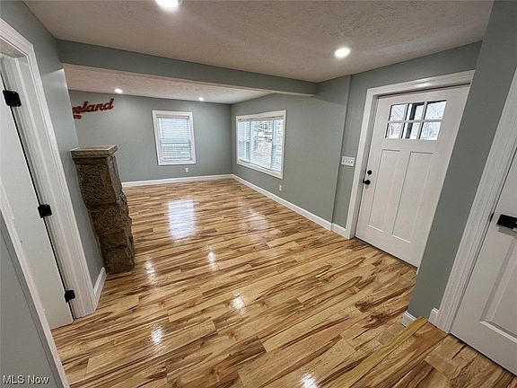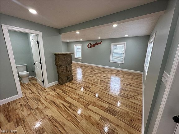 Welcome to your dream home! This stunning 3-bedroom, 1.5-bathroom, 3-car garage, gem has undergone a full renovation, promising a perfect blend of modern elegance and timeless charm. As you step inside, the open-concept living space greets you with warmth and sophistication. The cozy living room features a newly renovated decorative stone fireplace with a brand new electric insert, creating a focal point that adds both ambiance and functionality. Whether you're curled up with a good book or entertaining guests, this space is sure to be a favorite. The main level has laminate flooring throughout and ceramic flooring in the kitchen area. The kitchen contains custom cabinetry with quartz countertops and brand new stainless steel appliances. The second floor has 3 bedrooms with new plush carpet, ample closet space, and plenty of natural light. The master bedroom is huge! The full bathroom has plenty of storage space and a meticulously tiled shower with sliding glass doors. All new windows throughout the home. There is new siding and new gutters on the exterior. This home features central air and a high efficiency furnace. The laundry station is located on the main floor. The inside of the garage is heated. Garage has underground storage space that has steps, and is painted and insulated. Fairly big. The balance of America's Preferred Home Warranty will transfer to the new buyer at no cost. And YES, the Cleveland sign is included!