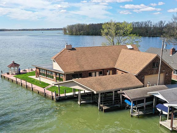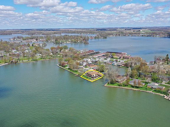 Location, location, location!! Do not miss out on this fabulous home with gorgeous, panoramic views of Indian Lake. The home is very well built and move-in ready. Practically every room has a wonderful view of the lake. The home features a very open floor plan with eat-in kitchen, dining room and family room combination. There is another 'lake room' for entertaining with a bar area and again, fabulous views! The family has a brick, wood burning fireplace and the lake room has a buck stove to enjoy the chilly fall and winter nights. There is one bedroom down w/attached bathroom and three additional bedrooms up. The home has a total of 4 bedrooms and 3.5 baths. All appliances, including washer/dryer, are included in the sale. Outside features include a back-up generator, a wonderful gazebo near the water, and two oversized covered docks. Even the attic is nice, with plenty of storage or additional room, if needed. The oversize garage is wonderful for your lake toys and has a nature stone floor.