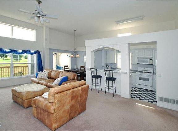 Incredible 3 bedroom 2 bath townhouse with plenty of sunlight on the 18th green of Eagle Valley Golf Course, fantastic open floor plan. Gas fireplace, beautiful vaults and gorgeous sunroom, granite, updated kitchen with all stainless steel appliances, upgraded crown modeling in Master bedroom and bathrooms, quartz countertops in all bathroooms. Must see. New roof.