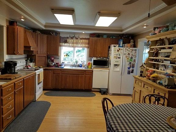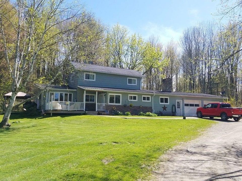 At the end of a private drive is this beautiful home which includes an attached 2 car garage and a separate 3 car detached garage with existing electric. Walking into the home you will quickly notice the craftsmanship and creativity of the current owners who have spent years updating several rooms throughout the house. The open concept of the home allows you to view the living and dining rooms from the spacious kitchen, featuring hickory cabinets and plenty of counterspace. The eat-in kitchen and separate large dining room make this the perfect place for hosting dinners. Keep cozy on those winter nights with 2 different fireplaces. The beautifully renovated bathroom features a soaking tub and a unique garden window. Also, on the main floor is an office with a fireplace, master bedroom, laundry room, den, and pantry. Upstairs are 4 additional bedrooms and a second bath. Location, location, location! You cannot help but fall in love with this spot which includes fruit trees, blueberry bushes, and grape vines. The property sits back at the end of the private drive, adjacent to the elementary school.