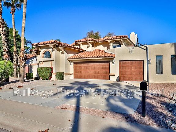 Don't miss this amazing 5 bedroom / 3.5 bathroom some with a three-car garage! This home's interior features carpet and tile flooring, two-tone paint, vaulted ceilings, and a fireplace (2 master suites). The kitchen comes complete with wall ovens, a refrigerator, dishwasher, microwave, pantry, and a breakfast bar! Enjoy your pick of two master bedrooms and a private bathroom with a separate shower/tub and dual sinks! Enjoy sunny Arizona in your fenced yard with a covered patio, grass landscaping, and a sparkling private pool! Landscaping and Pool service included! This home is located near shopping outlets and the loop 101 and loop 202 freeways. Contact us today! home occupied through 7/31/25, looking for move in in august Terms: Renters Insurance required $100 monthly resident benefit package (includes bimonthly hvac filter install) $300 Admin fee paid upon move in. Pets call first Call to view today! Equal Housing Provider Amenities: pool
