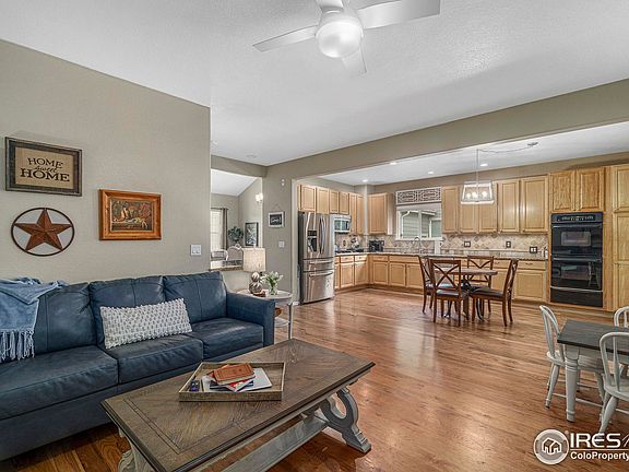 Back on the market! Welcome to this beautiful home located on a corner lot in the highly desirable St Vrain Ranch neighborhood. The grand front entry with 2 story vaulted ceiling opens to the light filled formal front living room and dining room. The kitchen boasts granite counter tops, the fridge of your dreams, a gas stove top and double ovens. The kitchen opens to the cozy family room with a gas fireplace. Upstairs is the good sized primary bedroom with a 5 piece bathroom that features granite countertops, a double vanity, separate shower and tub and a walk-in closet. Three other bedrooms, a full bathroom and the laundry room finish out the upstairs. The basement is an entertainer's dream with a wet bar, rec room and lounge area, gas fireplace plus a bedroom and bathroom. The back yard oasis offers a huge covered patio with built in speakers and fans as well as a gas grill and fire pit. The finished 4 car garage is perfect for your tools and toys. New windows installed in the front of the home for optimum energy efficiency. Spectacular and conveniently located! You've got another chance at this wonderful home! It is back on the market because the previous buyers' financing fell through.