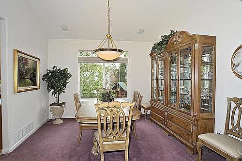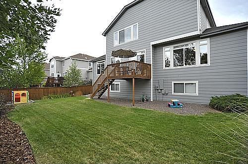 This Richmond Merlot model is one of the largest homes in this community! The large backyard features a sand box and deck for BBQs. The exterior was painted in 2006 and still has a fresh look. The three car over-sized garage has a service door to the backyard and plenty of room for cars and toys. Surround yourself in spacious rooms! The next owner will love the fantastic combination of both living and storage space! Hardwood flooring, a bay window, handsome staircase and vaulted ceilings create an elegant look. The formal living and dining rooms offer entertaining options and both feature surround sound. The kitchen features yards of 42 maple cabinets, black appliances, a double oven, a brand new microwave, a huge center island, planning desk and a casual dine-in nook. Move right into the large family room with a warm gas fireplace and built-in glass front cabinets on each side. This is a great place to display your treasures. There is surround sound and a remote ceiling fan. A main floor bedroom can double as an office and just steps away is the 3/4 bathroom. Secondary bedrooms are big. The guest/kids bathroom has double sinks and a skylight. There are mountain views from the over-sized master suite. Vaulted ceilings and a mirrored walk-in closet are nice touches. Make this five piece bathroom your own luxurious retreat! Other notable features include: a garden level basement roughed in for plumbing, tech center, CAT 5 wiring throughout, security system, upgraded humidistat fan system, vapor barrier and sump pump. Upgrade your square footage in this affordable giant! Another TESTA-monial