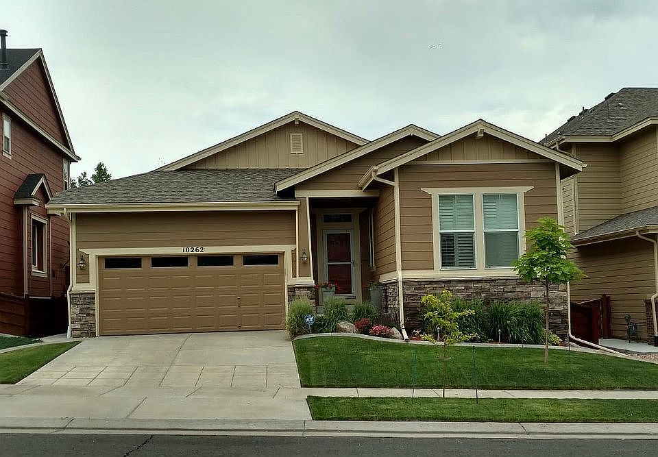 Beautiful 2 bedroom ranch with private study with glass French doors Tile entry with lighted artists wall 10 foot ceilings upgraded cabinets slab granite countertops with Island, Hardwood floors, full size 1,735 square foot basement with 9-foot ceilings plus rough-in. 12 x 20 extended patio with pergola and professional landscaping.