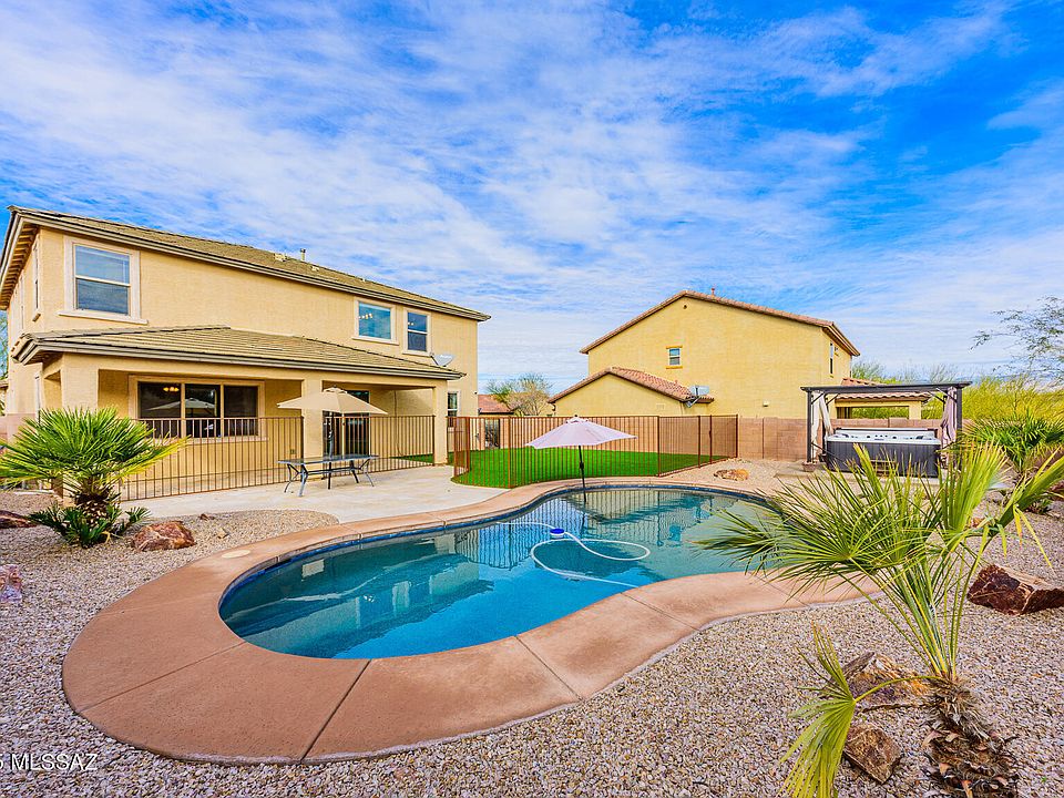 Range Priced-Seller will accept/or counter offers b/w $449,500 &/or $475,000. VA ASSUMABLE LOAN !!!! AT A GREAT RATE!! - EXTENDED TO VA BUYERS. Welcome to this expansive 4 Bed/3 Bath home complete w/ a sparkling Pool, Hot Tub, Gazebo & Artificial Turf. The east-facing backyard w/ stunning Views of the Rincon Mountains is the cherry on top! Inside, the open concept design features a spacious Great Room, Dining Area, and gourmet Kitchen with Stainless Steel Appliances, Granite Counters & Double Oven. A Bedroom & Full Bath are conveniently located on the main floor. Upstairs, you'll find a generous Loft, spacious Bedrooms, Full Bath & Laundry Room. This home is the ultimate blend of comfort, style & outdoor relaxation! Visit today!