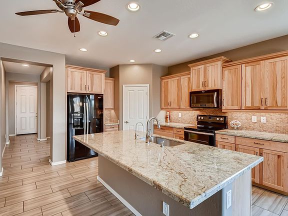 Located within steps of the clubhouse in the beautiful 55 +community of Encore at Eastmark, this popular & highly upgraded Lindy model is immaculate & ready for the most discerning of buyers! This home offers 2 bed+den, 2 bath, great room, eat-in kitchen, & a 2 car garage. Beautiful upgrades & finishes include: hickory cabinets t/o including in the butler's pantry, granite countertops in kitchen, black ice appliances including convection range with double ovens & counter depth refrigerator, 12x24in tile flooring throughout, Hunter Douglas Duette Architella honeycomb cellular shades t/o, under cabinet LED lighting, CAT 5 prewire, Vacuflo central vacuum system with garage inlet, Watts Premier filtration system, Ameriflow water softener, Kichler ceiling fans t/o, garage ceiling storage racks,