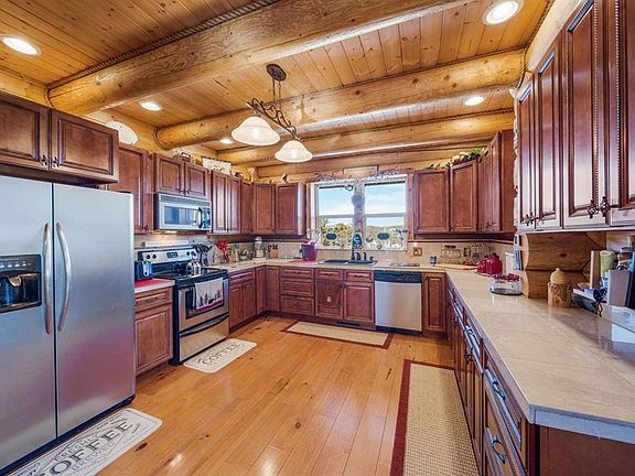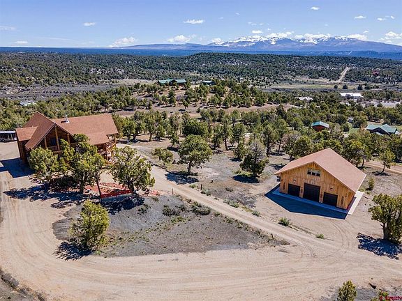 Views, views, views! This Swedish Cope Log Cabin home was built in 2008. The property enjoys excellent exposure and breathtaking views of the LaPlata Mountains, Mesa Verde and the San Juans. The 3812 SF, 3 BD/4BA home is beautifully elevated for clear and beautiful views and seclusion. It has an abundance of wildlife including deer, and wild turkey. The dining room provides a welcoming area for entertaining with access to the wraparound balcony for additional outdoor living and dining space. This home features vaulted ceilings, an oversized wood burning fireplace, and tons of windows framing the great outdoors. On the main floor you will find the master with a full bath with double vanities. The guest bedrooms are on the second floor, each with it's own balcony and a beautiful guest bathroom adorned with natural sunlight shining through. Head to the lower level where you will find double French doors heading out to the lower outside entertainment area. The floors are yellow pine from Tennessee. The doors are Mahogany six panel doors. The ceilings are tongue and groove through out the home with pine on the main floor and 2nd level and aspen in the lower level entertainment area. The home was built with all utilities running through the ground floor up the interior walls as not to cut through the original logs. A detached, oversized 3-car garage (perfect for boats, RVs, etc) along with a loft for storage and staircase that extends for extra storage underneath, built with 13' high ceilings and absolutely no pillars for ease of parking large vehicles. There is an additional garage for an RV behind home as well as an additional shed for snow removal equipment. The 4 acres in front of the home is properly mitigated to reduce the chance of wildfire spread. Endless recreational opportunities are just a short drive away including Two Rivers Marina at Navajo Lake and on the confluence of the Piedra & San Juan River. San Juan River and Animas River have gold medal fly fishing. Hiking at either Chimney Rock National Monument or Mesa Verde National Park. Skiing at 4 nearby ski resorts. Snowmobiling trails within a short drive. Phil's World offers 60 miles of mountain bike trails and conveniently located just a short drive from the property. Fabulous shopping in Durango and Pagosa Springs. This area is known for it's exceptional deer and elk hunting with local outfitters. Durango and Pagosa Springs are known for their outstanding Hot Springs and Spa's for rest and relaxation after enjoying a long day of Colorado activities. Within 45 minutes is Vallecito Lake for boating, sailing or catching some rays. Durango Silverton Railroad is near by for a train ride in the raw beautiful untouched national forest and some shopping and lunch in Silverton. Durango is home to some of the finest restaurants and festive dining atmosphere. There are 2 airports, one is within 45 minutes in Durango and Cortez airport within 20 minutes. Schedule your showing today!