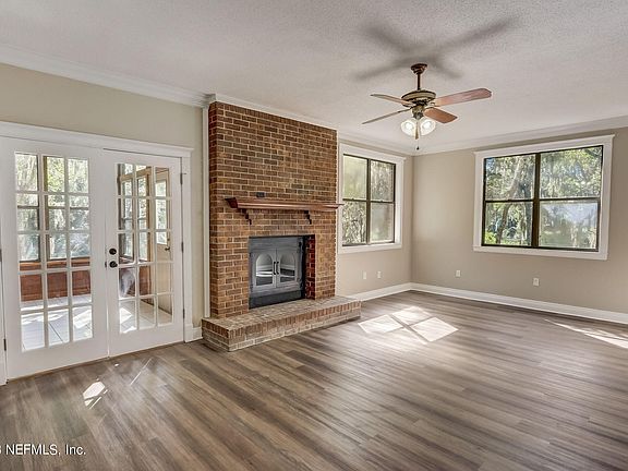 Located in the heart of Mandarin on a half acre! NO HOA, Roof 2021, HVAC 2022, WH 2022, freshly painted inside and out, new flooring throughout, new double ovens, recently updated bathrooms, 2 fireplaces, huge Florida room overlooking the rolling wooded lot, and more! Enjoy the spacious family room with brick fireplace, large gourmet kitchen with a large breakfast room and bar seating, formal dining room, inside laundry room with cabinets and utility sink, plus extra storage or workshop space in the garage. You'll also find a first-floor owners suite with walk-in closet and full bath, and convenient half bath off the foyer.