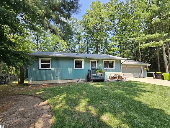 Everything you need and nothing you don't. "Adorable" best describes the decor of the well designed home with a spacious living area, three main level bedrooms and an efficient kitchen and dining area. The mostly finished, walk-out basement is a blank canvas for the new owner and currently purposed as a fourth bedroom and family room. The two car attached garage also has two "bump out" areas for additional storage. Outside is really where this property shines. The front yard is beautifully maintained with thoughtful natural landscaping, a large fenced garden area, an extended parking area and is framed by towering trees to hang your hammock from. It gets even better in the fenced back yard where a canopy of mature trees provides shade and privacy. Grab your pole and step through the gate at the back of the yard and onto State land and a pond full of bluegill and perch! Too hot for fishing...? Wander to the shared sandy beach on Cedar Hedge lake for a cool swim or over to the other shared access overlooking Lake Dubonnet. All of this is within just a few minutes of groceries, gas and more at Interlochen corners, terrific restaurants like Oaky's, Bradley's and The Hofbrau as well as Interlochen Center for the Arts.