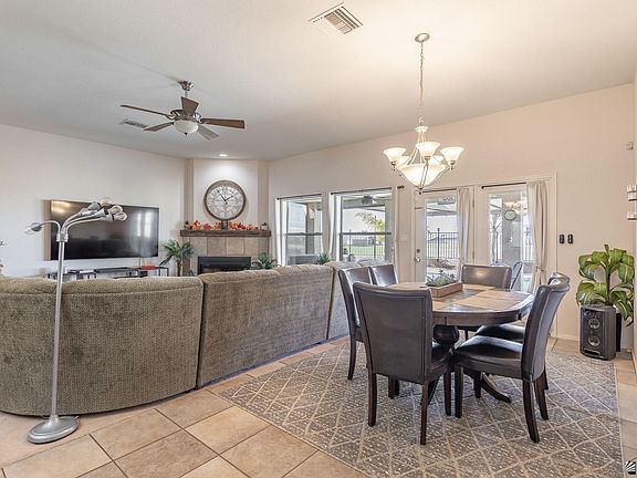Beautiful home located in Del Rey Estates in Mesa Del Sol. This 3-bedroom, 2-bath property boasts a spacious living room filled with natural light, a warm fireplace, also featuring recessed lighting and tiled floors in high-traffic areas. The kitchen offers ample storage, generous counter space, a salad sink, and a pantry. The expansive main bedroom includes a walk-in closet and a garden tub. Step outside to your personal paradise with a covered patio overlooking the 14th hole of the golf course. The newly installed pool is shaded and surrounded by low-maintenance artificial turf. The home is equipped with a water softener and reverse osmosis system. Make this your home for the holidays—this gem won't last long!