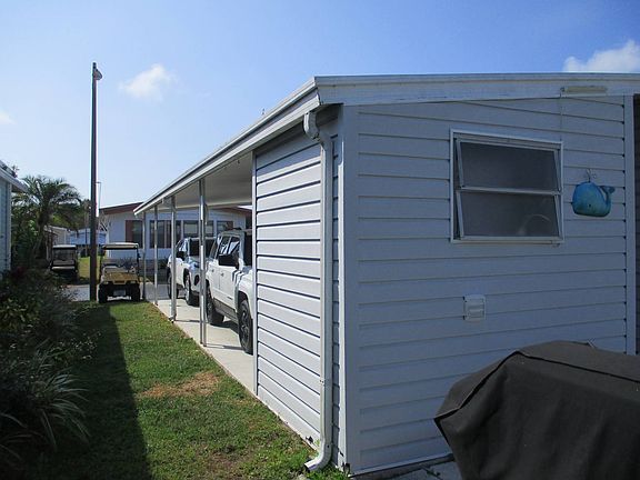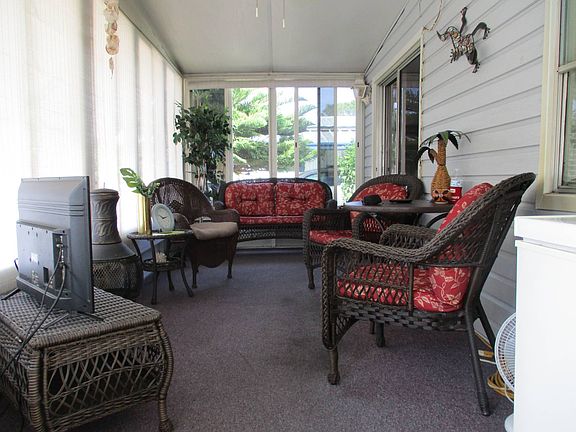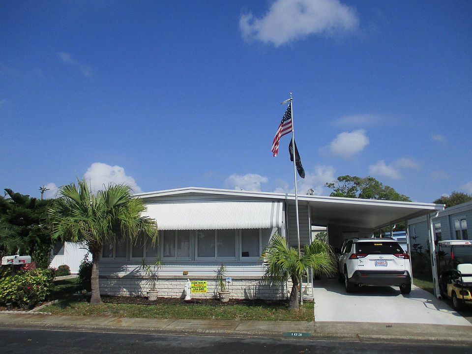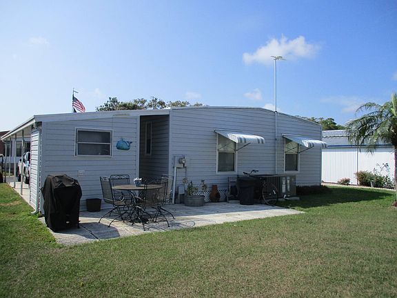 RESPOND TO LISTING AGENT to view this lovely PARTIALLY FURNISHED 2/2 located in beautiful, active 55+ park with great amenities: clubhouse, heated 24 hour pool and spa, shuffleboard and lovely spring fed pond. Scooter chair/Walk/Bike to shopping, banks, restaurants and more. Sugar sand Gulf Beaches just 3 miles West. REASONABLE LOT RENT of approximately $690 covers lawn, trash, pool/clubhouse, water/sewer metered according to usage. ~~~What great CURB APPEAL this pretty 2/2 has! Newer VINYL SIDING, lush landscaping and the inviting ENCLOSED FRONT SUN ROOM show this is a well maintained home! FRONT SUN ROOM has better acrylic VERTICAL SLIDING WINDOWS with Screens for an all weather room with its own Front Door Entrance. Sun Room has a ceiling fan and a Sliding Door leading to the Main Living Area. Sun Room is unfurnished. ~~~L-SHAPED LIVING/DINING is furnished with a Reclining Sofa and 1 Newer Recliner, Dining Area furnished with Table and Chairs. LIVING/DINING and HALL are Drywalled and have other attractive additions: chair rail and decorative molding. ~~~KITCHEN has lots of cabinets plus a Pantry Closet, backsplash, glass top stove, microwave and stove.~~~GUEST ROOM is furnished with a day bed, bedside table and has a spacious step in closet. GUEST BATH is across the hall with Tub/Shower (updated shower surround), Vanity with storage and toilet.~~~EN SUITE MASTER is spacious with a Walk In Closet. Dressing Area with Vanity/Sink has Linen Storage. Separate Room with Updated Step in Shower and Toilet. Master Bedroom is unfurnished.~~~IMPORTANT FEATURES of this home are AC/Heat and Ductwork (2020) with transferable warranty, updated electrical service in the Shed, updated lighting fixtures, 2 newer ceiling fans and Coated Roof (2021).Long Carport easily accommodates 2 cars and has attached Storage/Laundry Shed. Washer/Dryer do not remain but there are hookups. PLEASE NOTE: Flag Pole does not remain.~~~ Nicer Backyard with a Patio and attractive landscaping. RESPOND TO LISTING AGENT TODAY for a viewing! CASH SALE.