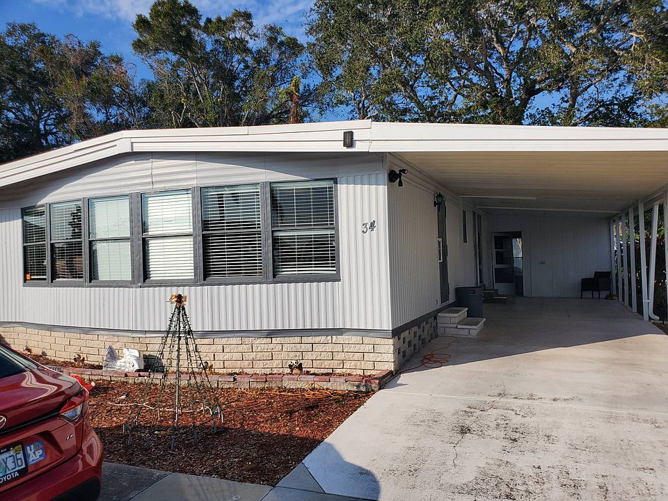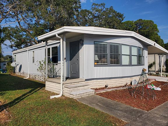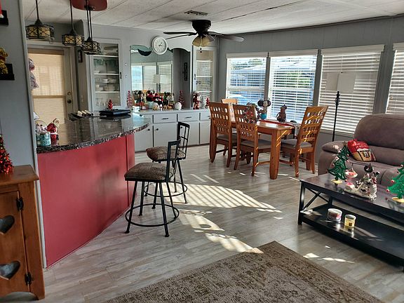 Welcome to this adorable manufactured home in a very desirable 55 and up community. This home sits in the pet section. 2 pets up to 40 pounds. Covered carport can easily fit 2 vehicles. Central AC only a year old! Water heater is also new! Walk inside to an open concept living area, dining area and huge kitchen with island! Refrigerator, stove, microwave 5 years old. Newer flooring installed a year ago. Living area is very open and bright with plenty of room for entertaining! Nice fireplace and TV will stay! Dining table will also stay with home. Tons of built in cabinets for all your dishes! Main bathroom has been completely remodeled. New flooring, new vanity, new tub and shower combo. Guest room is very spacious with slider doors. This bed will stay. Master bedroom is very nice and inviting. This bedroom set will stay. Huge walk in closet. EnSuite bathroom has nice vanity area and walk in shower. Large backyard space with an outdoor patio area too!! COME MAKE THIS FLORIDA HOME YOURS!! CONTACT GAIL TODAY 704 NINE ZERO SIX, 76 FIVE FIVE We ask that the buyer always inspect any home they wish to purchase. We cannot guarantee or warrant the accuracy of this information or the condition of any property. The buyer assumes full responsibility for obtaining all current rates of lot rent, fees, or pass-on costs associated with the mobile home community, park etc, and square footage of home