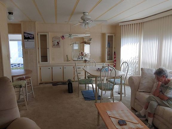 RESPOND TO LISTING AGENT to schedule a viewing of this AFFORDABLE, MOSTLY FURNISHED 2/2 close to EVERYTHING! Located in an Active 55+ park with great amenities: clubhouse, heated 24 hour pool and spa, shuffleboard and lovely spring fed pond. Scooter chair/Walk/Bike to shopping, banks, restaurants and more. Sugar sand Gulf Beaches just 3 miles West! Monthly fee of $640 includes lawn, garbage, beautiful amenities. Water/sewer billed monthy (personal usage).~~~CHECK OUT THIS GREAT DEAL! MOSTLY FURNISHED: LIVING ROOM SOFAS, END TABLES, COFFEE TABLE, LAMPS, DINING TABLE/CHAIRS, BUILT IN CHINA CABINET, BEDS, END TABLES IN BEDROOMS, MASTER EN SUITE FURNISHED, ALL WINDOW TREATMENTS. Staging Items will not remain - those are decor items. FRESHLY PAINTED, inside and out, NEW ROOF OVER w/NEW WARRANTY, NEW FLOORS/SOLID SUBFLOORS, STYLISH BACKSPLASH IN KITCHEN, GORGEOUS TILE SHOWERS, New Sinks in Baths, newer Stove, newer Fridge, Dishwasher, Washer/Dryer in Shed. Beautiful Neutral Color Scheme so easy to decorate in your own style! TONS OF STORAGE in this home! KITCHEN HAS PANTRY CLOSET, DINING w/BUILT IN CHINA CABINET, GUEST ROOM and MASTER have WALK IN CLOSETS, LINEN STORAGE in MASTER BATH. SPACIOUS, BRIGHT AND OPEN, close to Sugar Sand Beaches! RESPOND TO LISTING AGENT TODAY before this AFFORDABLE HOME is gone!