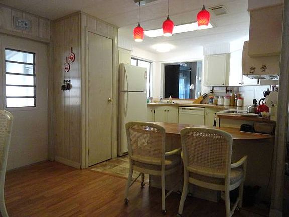 RESPOND TO LISTING AGENT now to schedule a viewing of this BEAUTIFUL FURNISHED 2/2 close to EVERYTHING! Located in an Active 55+ park with great amenities: clubhouse, heated 24 hour pool and spa, shuffleboard and lovely spring fed pond. Scooter chair/Walk/Bike to shopping, banks, restaurants and more. Sugar sand Gulf Beaches just 5 miles West. Monthly fee of $640 includes lawn, garbage, beautiful amenities. Water about $25/month (personal usage) additional.~~~Looking for a larger fully furnished 2/2 with a 200 sq.ft. Bonus Room? Here it is! OTHER IMPORTANT FEATURES ARE: Metal Roof Over, Solid Subfloors/Laminate/Vinyl, AC/Heat (approx. 7 yrs.), Water Heater (approx. 7), Updated Plumbing and generally well maintained.~~~The Bonus Front Room with it's own exterior entrance is very spacious and could easily accommodate a sleeper sofa, become an office or den, whatever you like! ~~~Eat in Kitchen with Pantry Closet, lots of cabinets, fridge (2017), dishwasher, breakfast bar. Dining area with built in china cabinet for your special pieces.~~~Wider hall with storage closet.~~~Guest Room has Walk in Closet plus another large Closet.~~~Guest Bath with tub/shower.~~~Very large Master En Suite with Walk in Closet (Shelving plus hanging rods) PLUS another closet. Dressing area with Vanity, Dual Sinks and separate room with toilet, Step in Shower. PLEASE NOTE: Quilt on bed will not remain.~~~Large, Enclosed Lanai --Vinyl Screen Covers make it an "all weather room." Attached Shed is in this enclosed area giving laundry "indoor accessibility." Lots of storage throughout this beautiful home. CLEAN, non-smoking, pet free home (although with proper documents a dog is allowed). CONTACT LISTING AGENT TODAY for a viewing or more information.
