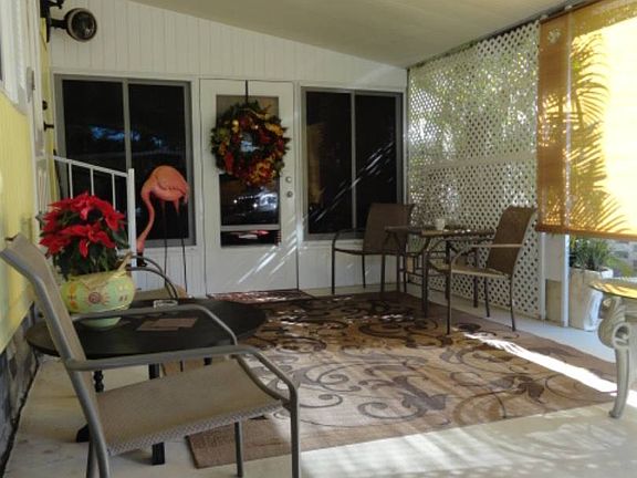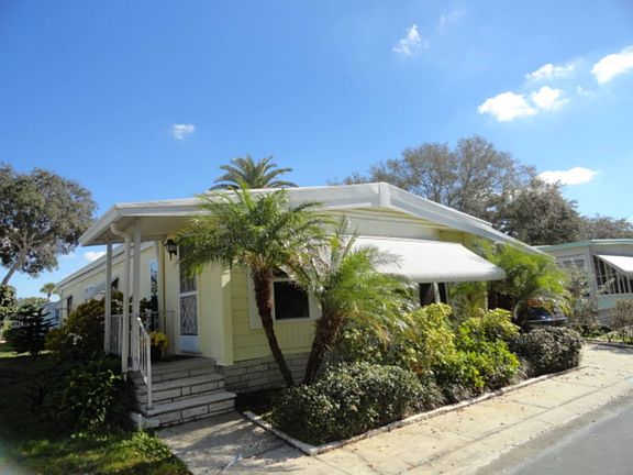 Respond today to listing agent to view this home or for more information! Approx. 1520 sq.ft. of an exceptionally maintained, updated home meant for truly gracious living. Super location in a beautiful 55+ park tucked away yet in the midst of everything and just about 5 miles from beautiful Gulf Beaches. Park approval (credit/background check) required for purchase.Lot rent of $612/mo. covers lawn, trash/recycling, amenities. Water/sewer approx. $30/month. ~~~HERE ARE THE IMPORTANT NEWER FEATURES that make this furnished home an excellent value: Roof over, new windows (2013), AC/Heat (2014) new ductwork (2012) solid subfloors w/vapor barrier, updated baths/showers (2011) new six panel doors throughout, new main exterior electric connection (2017), updated plumbing (no polybutylene pipes) new dishwasher (2015) and many other improvements/updates.Throughout this home are better ceiling fans, better decorative hardware in baths, many accents not typically found.~~~THIS HOME'S ENTRANCE IS LIKE NO OTHER - YOU WILL LOVE having a Foyer, a gracious entrance to this lovely home, specially designed to maximize usage of this valuable space. AN AMAZING AMOUNT OF STORAGE is throughout this stunning home: living room closet, 2 kitchen pantries, hall closet, walk in closets, storage everywhere.~~~KITCHEN/DINING is open. Island Kitchen with Jennaire cooktop, updated sinks/faucets, all Kitchen cabinets/pantry rebuilt with pine, Dishwasher (2015).~~~Dining room table has additional leaf and will seat 10. Note the built in serving area in dining. ~~~The LOVELY SPACIOUS LIVING ROOM has beautiful bay windows across the front - all new (2013)! In addition, there is an exterior entrance on side of living room.~~~YOU WILL LOVE having 2 EN SUITES! Guest En Suite has private access to enclosed air conditioned Florida Room (glass windows/screens) VERY MUCH LIKE AN APARTMENT! Guest En Suite has a large walk in closet. Guest bath is beautifully appointed and updated with a beautiful oversized ceramic tile shower and gorgeous vanity.~~~MASTER EN SUITE occupies entire rear of home - very large - with huge walk in closet plus another large closet, a beautiful bath with twin sinks and a separate water closet.~~~Oversized shed (not pictured) accessible from Florida room or from rear exterior(front and rear locking doors) with washer/dryer and lots of storage.~~~Carport parks 2 cars or can be used as a patio as current owners do.~~~YOU WILL BE SO PROUD OF YOUR CURB APPEAL: Beautiful tropical plants in front, along carport side and by rear patio.~~~THIS WILL BE A TURN KEY HOME. Every room will be furnished, kitchen will be stocked with dishes, pots/pans. EVERYTHING here is excellent quality. Furnishings are exceptional, clean and tasteful. A list of furnishings can be provided. Many decor items including some lamps, wall decor and other personal items will not remain.Plenty does remain! This is a MUST SEE HOME to FULLY APPRECIATE HOME. All photos not displayed. ~~~Contact listing agent today for a viewing. This stunning home will not last and this quality cannot be easily found or duplicated!
