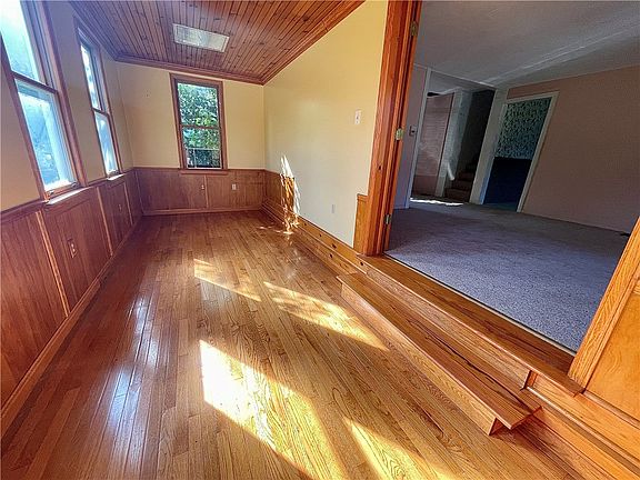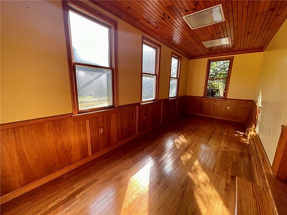 Lots of potential on one acre surrounded by game lands! Updates include new furnace, water softener and metal roof. Beautiful newly finished sunroom with hardwood floors. Large bonus/family room with wood stove to be finished to your liking. 1st floor laundry. Master bedroom offers attached full bathroom. Large 2 car garage with wood stove. Remaining siding is ready to go in the garage for when you're ready to make this home your own!