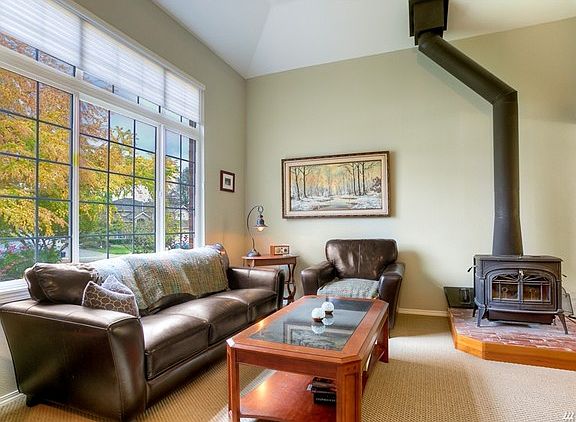 Best south facing location on a private, quiet street! Exceptional care and improvements have been made to this beautiful home. 3 year new 50yr Architectural Comp roof. New kitchen remodel. Custom blinds. Newer carpet in several rooms as well as high end Berber in the living and office with French doors. Vaulted ceilings. Real wood stove in the living room too! Wired for generator, custom shelves in the 3 car garage, large rear patio, garden shed and a VERY private back yard!