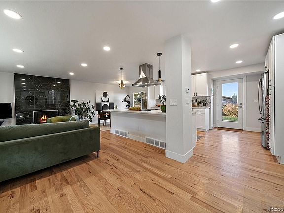 Tucked into the established Kendrick Lake/Lochwood neighborhood and walking distance to many lakes and tails, this newly fully renovated home sits on a generous 13,000'/3rd acre landscaped lot with smart sprinklers, surrounded by mature trees and lush green foliage. The  2024 renovation boasts an open and functional layout with quality finishes throughout. The kitchen features granite/marble countertops, stainless GE steel appliances, and hardwood floors that extend through the main level/stairs, seamlessly connecting the living and dining areas. Bathrooms have been completely updated with new fixtures, tile, and vanities. Every detail in this home has been thoughtfully executed, from the solid core doors and new wall base throughout, as well as the added comfort of air conditioning and smart window coverings and smart features. Owners have shown pride of ownership and attention to detail with show home elegance. The home offers three bedrooms upstairs, including a comfortable primary suite, and two additional bedrooms downstairs that provide flexible space for guests, a home office, or hobbies.  Outside, the large patio and well-manicured lawn make the yard an easy place to relax or entertain, with plenty of room for outdoor games. The location is hard to beat - situated between 3 reservoirs and just steps from Kendrick Lake, with easy access to nearby trails and parks. Belmar’s restaurants and shops are only 10 minutes away, and for a bit more adventure, Green Mountain Trailhead is just a short drive. With convenient access to Hwy 285 and Hwys 6 & 70, getting to the mountains or downtown is equally easy.  Don't delay on your showing of this simplistic modern gem!