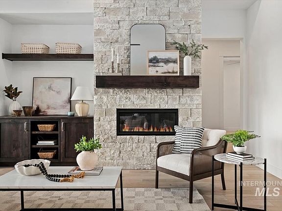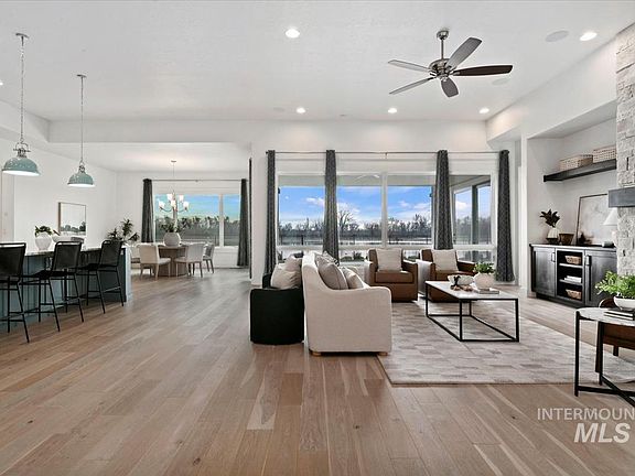 Waterfront! Rare opportunity to own a piece of paradise overlooking Heron Lake with easy access to the Boise River. Lower patio features a sandy beach and your own private dock. Nature at your fingertips! This remarkable and one-of-a-kind custom-built residence offers lots of natural light, extensive hardwood flooring, custom cabinets, top-of-the-line appliances, and much more. The owner's suite is a relaxing retreat, featuring a spa-like bathroom complete with a spacious walk-in tiled shower, a claw foot tub, and very generous closet space. The 12 ft. ceilings great room is enhanced by a stunning stone fireplace with custom built-ins and 5:1 surround sound speakers. The very private covered patio with tongue and groove ceilings is easily accessed from both the great room and flex room. Oversized 1000 sq. ft. 3 car garage with epoxy floors, enclosed mechanical room with water softener, tankless water heater, and professional cabinets.
