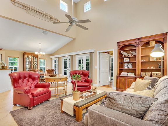 Come enjoy this Key West style home on a tranquil 1.25 acres in Jupiter Farms. The 20' ceilings, french doors, and open floor plan make for a comfortable living space with a ton of natural light. The master suite opens to the patio with bamboo flooring and beautifully renovated custom bathroom complete with oversized shower, jet tub, and walk in closet. Other features include laundry room with utility sink, oversized and air conditioned garage, newer water softener, and brand new AC. Enjoy the spectacular views of the backyard from the screened in patio. Plenty of room for a pool. Property includes a shed and several pads for parking your toys or recreational vehicles. Fully fenced and gated, and conveniently located close to Jupiter Farms Road.