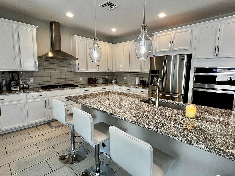 Pride of ownership shines in this move-in ready 3 bed, 2.5 bath home, that features 2 living spaces & den, which could be converted to 4th bdrm. The heart of this fabulous home lies in its contemporary & stunning gourmet kitchen, that boasts upgrades galore w/gorgeous cabinets, granite counters, large island, huge walk-in pantry & SS appliances. Primary bedroom w/ensuite features 2 vanity spaces, rain shower & large walk-in closet. 3 car garage has built in cabinets & whole home water softener. Backyard has been professionally landscaped, patio furniture remains! Neighborhood amenities include parks, pool, community center & more. Assumable VA loan too! Welcome Home!
