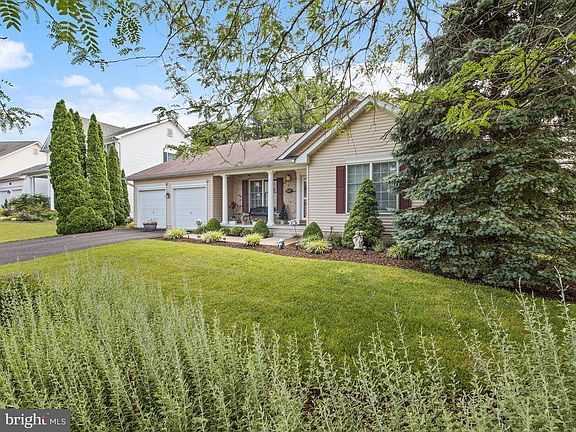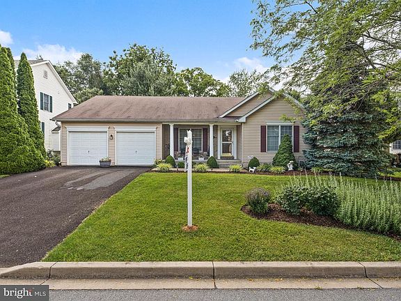 Beautiful rancher with extensive landscaping and curb appeal near cul-de-sac. Walk up to your relaxing front porch and enter your foyer with hardwoods. A spacious living room with floors is to your right, and a dining room with wood floors and chair rail molding is to the left. The kitchen features all appliances, a breakfast bar, pantry and slider to the amazing deck overlooking your relaxing back yard and backing to trees. The family room is carpeted with vaulted ceilings, recessed lighting and a gas fireplace. Two main level bedrooms and two full bathrooms make this home accessible and convenient. Endless possibilities with the large unfinished basement. HVAC is 4 years young. Convenient to 15, 270, 70. Taskers Chance offers community pool.
