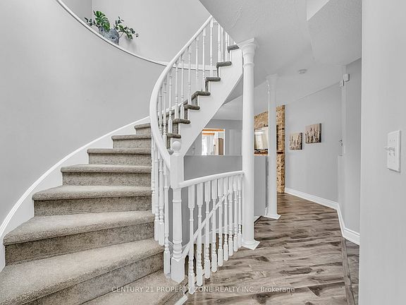 Discover the essence of Milton living just steps from your doorstep, minutes from the Art Centre,Leisure Centre, parks, schools, and commuter access to the GO Station and 401. This home boastsparking for three, a newer deck, and no sidewalk. Inside, enjoy custom finishes, freshly paintedwalls, and brand new floors throughout. The living room features a stone wall and live edge mantlesurrounding the electric fireplace, while the eat-in kitchen offers granite countertops, stainlesssteel appliances, and faux wood beams. Upstairs, find four spacious bedrooms, including a primarysuite with three closets and a 4-piece ensuite. The fully finished basement adds even more space,with an extra bedroom and ensuite, a rec room, laundry, and ample storage. This home has everythingyou need for comfortable, stylish living.
