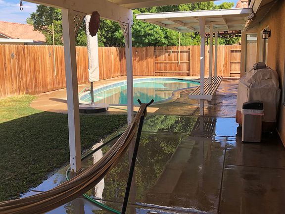 well maitained 4 bedroom 2 full baths, 2 car garage. Entry way, living room and dining room have upgraded plank tiling along with 3bedrooms. Kitchen, t.v. room hallway, master bedroom and bathroom have ceramic tile. Home comes with upgraded Samsung appliances which include counterdepth refrigerator and washer and dryer which all come with warranties. Has covered patio and pool.