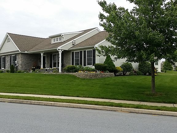 You will love this corner lot, TOTALLY renovated in 2017/2018, 3 BR/2 BA rancher. Open floorplan. Kitchen totally gutted and replaced with white cabinets and quartz counter tops, a new large island, and stainless steel GE appliances. New luxury vinyl plank flooring installed throughout with 5" baseboards replacing the old 3", LR updated with tiled gas fireplace. Bright four seasons sun-room, flagstone patio, large 2-car garage with additional off street parking. Bathrooms updated with white vanities and quartz countertops. New gas furnace and heatpump installed. Large workspace and cabinets added to oversized garage. Community gathering space at the ClubHouse with breakfast cafe, library, fitness room, shuffleboard, pool table, bocce, table tennis, and a stocked fishing lake! A nearby fitness center accepts Silver Sneakers - great for those with any lifestyle!