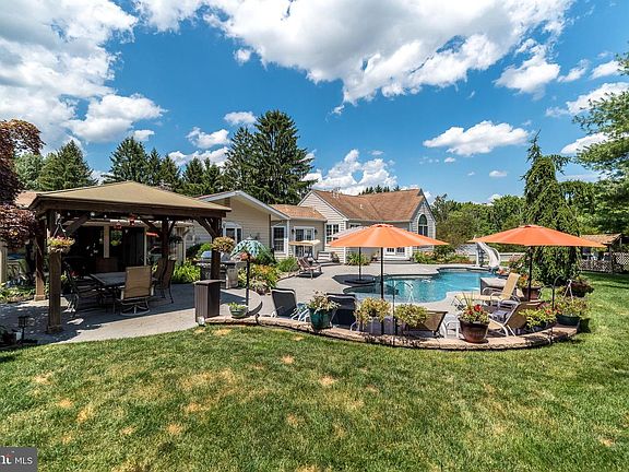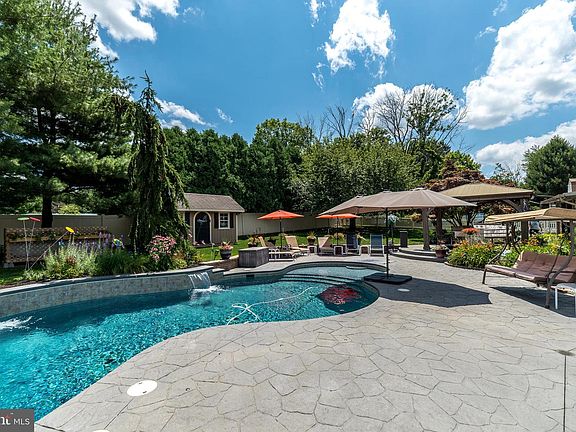 This custom built home in historic Wycombe is like no other. Located in the highly desired Council Rock School District. The property is nestled on 4.5 acres on top of a hill with views that are just beautiful. Love and care is shown throughout your tour. Summers will not disappoint as you lounge around the many sun decks including the tanning ledge of the in-ground pool. Maybe a slide is more of the excitement you are looking for in the deep end of the pool. Prefer the shade; relax under the Gazebo or in the three-season sunroom. Rental income opportunity is here is the newly renovated 1 bedroom apartment complete with washer/dryer and garage. In addition to the 6 car garages there is a steel 40x20 barn/storage shed, perfect for hobbies, snowmobiles, dirt bikes, quads, cars, RV, boat or small equipment. Inside the home you will find large rooms with a unique open floor plan, hardwood floors, wood burning stoves, wood beams, built-ins, and cathedral ceilings. The Jack & Jill bathroom connects 2 generous size bedrooms, one with built in storage and a window seat. Also, on this wing you will find another bedroom and full bath as well as a laundry room with additional full bathroom and entrance to the 3 car attached garage. Primary bedroom can be found on a separate wing complete with 2 walk-in closets, spacious bathroom with 2 vanities, jetted tub, shower stall and glass door that leads you to paradise. In the colder months, the newly finished walk up basement will provide extra space to entertain in and additional storage. Upgrades include; Generac Generator, windows, doors, roof, solar electric, gas cooking, window treatments, wainscoting, lighting, wood flooring, built-ins, stamped concrete and bathrooms. Conveniently located near many other local Historical sites: New Hope, Newtown, Doylestown, Peddlers Village, Bowmans Hill Tower, Tyler State Park, Neshaminy State Park, Winerys