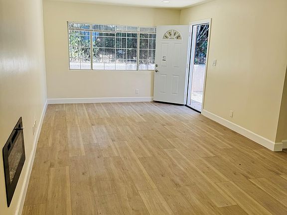 Beautifully upgraded and spacious 1-bedroom 1-bathroom home, with high-end finishes! This property feels like a single-family home with nobody above or below you and only 1 shared wall. Comes with gated, off-street, assigned parking. Amazing wall mounted fireplace, high-end appliances and plumbing fixtures, incredible shower/tub with shiny new tile and an overhead shower rain head. Comes with side-by-side refrigerator, dishwasher, gas stove, over-the-oven microwave, extra storage space, and a private outdoor patio, all behind gates in a sprawling complex with ample open space and even a pet park. This 8-unit community has its own laundry room dedicated for residents. Fancy carport parking (in addition to the assigned uncovered parking) is available, which includes storage lockers. Complex is situated in a single-family neighborhood surrounded by nice homes. This is not like living in an apartment, this is like living in a detached home! Minimum credit score is 650, but 680+ preferred.