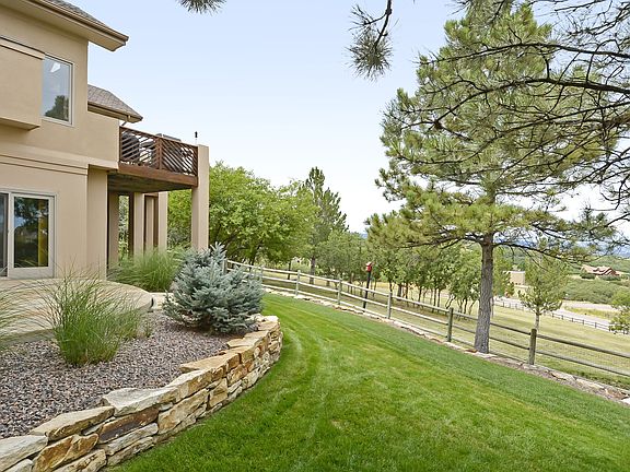 ONE OF THE HIGHEST POINTS IN THE DESIRABLE KEENE RANCH, WHICH ALLOWS FOR ASTOUNDING FRONT RANGE AND DAWSON BUTTE VIEWS! FROM THE MOMENT YOUR FEET STEP INTO THIS RANCH, YOU WILL FEEL THE PRESENCE OF THE MOUNTAIN VIEWS FROM SO MANY ANGLES! OPEN AND SPACIOUS FLOOR PLAN-4 BEDROOMS/5 BATHROOMS-- TO ALLOW FOR PLENTY OF SPACE FOR YOUR FAMILY OR FOR ENTERTAINING! YOU WILL LOVE THE NEW GRAY FLOORING AND LIGHT FIXTURES! THE 4.67 ACRES IS ALLOWS FOR PRIVACY AND SO MUCH SPACE THAT IS SO CLOSE TO THE TRAILS! THIS SPRAWLING RANCH FLOOR PLAN IS GRACED WITH A TOTALLY OPEN FLOOR PLAN--THE KITCHEN HAS SO MUCH CABINET SPACE/ ISLAND/ SECOND SINK/GRANITE COUNTERTOPS! THE FAMILY ROOM IS SURROUNDED WITH LARGE WINDOWS THAT MAKE YOU FEEL THE PRESENCE OF THE BEAUTIFUL COLORADO MOUNTAINS! THE FINISHED WALK OUT DOES HAVE A BAR AREA RIGHT OFF OF THE EXERCISE/GAME ROOM! THE THREE CAR GARAGE IS OVERSIZED AND THERE IS A TON OF EXTRA PARKING SPACE IN THE DRIVEWAY AREA. KEENE RANCH DOES ALLOW FOR OUTBUILDINGS AND HORSES! THIS EXCLUSIVE SUBDIVISION OFFERS MILES OF OPEN TRAILS AND BORDERS TO OPEN SPACE--THIS IS TRUE COUNTRY LIVING THAT'S CLOSE TO THE CITY--CASTLE ROCK AND LARKSPUR ARE ONLY MINUTES AWAY!!
