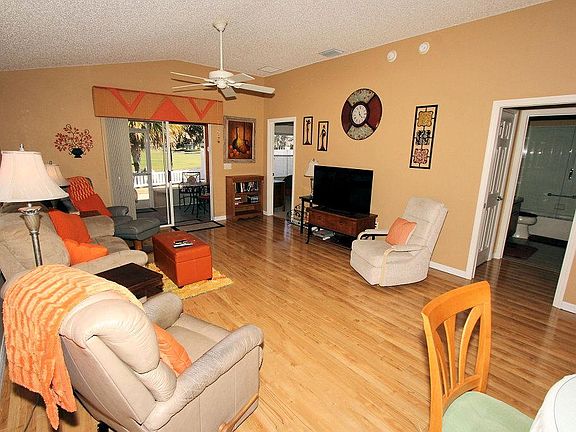 Very nicely appointed 2/2 Foxglove Courtyard Villa in the centrally located Village of Bonita. Lovely Kitchen and Living room with a beautiful golf course view of Havana CC. Master has a King bed with 28 inch TV and walk in closet. Second bedroom has a Queen available for Guests. There is an electric 2-seat golf cart available. Beautiful Lanai and Patio overlook golf. Home is convenient to Sumter Landing/Shopping and plenty of golf. You can not miss!