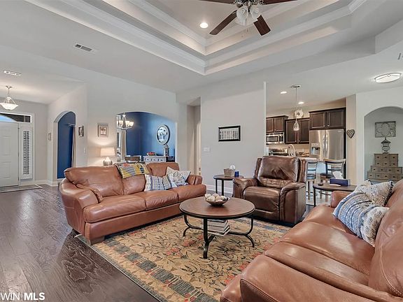 PRICED TO SELL!!! This gorgeously upgraded home offers a stunning open floor plan with a brilliant combination of tray and vaulted ceilings that flows out to an enormous covered porch and fenced in back yard. The spacious master bedroom offers enough room for a study or sitting area as well as a huge walk in closet and an elegant master bath with granite countertops, tile shower and soaking garden tub. Your magnificent kitchen offers a gas range and opens up into your living area with tall tray ceilings and a gas/wood burning fireplace (currently operating with gas logs). The large office with vaulted ceilings and bright bay windows could easily be converted to a 5th bedroom if needed. On top of offering granite throughout, tall ceilings, exterior storage shed, rain gutters and sprinkler system this home also has a Reni tankless hot water heating system. That means you have a more efficient home with never ending hot water! Please call the listing agent, Kasey Harris, at 251-424-3736 for all questions regarding this listing.