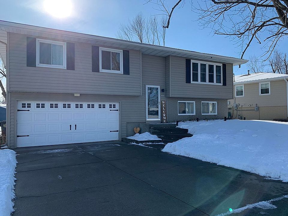 Beautiful home with lots of updates and move in ready. Newly extended back patio off screened in walk out lower level porch. Sliding door to upstairs deck that has stairs access to new patio. All new sidewalks in the front of the house. New vanties/sinks and toilets. New flooring/carpet, new trim. Walking distance to elementary school and park, splash pad, bike and walking trails. Middle school/High school bus pick up and drop off right at the corner! Fenced back yard perfect for kids and pets. Easy I-130 access and shopping around the corner.