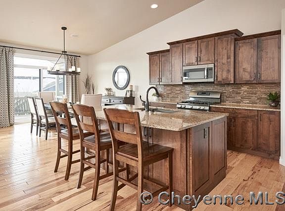 Every detail of this semi-custom home is designated w/ function & beauty. Soft-close cabinets w/ organizational features, granite throughout, custom tile, solid hickory flooring. Music system & various home automation features controlled from your smartphone. Huge maintenance-free deck w/ great views & tons of entertaining space. Additional patio below - finished walkout (w/ wet bar) doubles outdoor living space. No detail was overlooked in this amazing home! Seller is a WY Licensed Real Estate Agent.