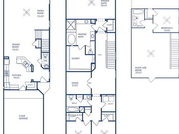 - Second floor: Primary suite with a large walk-in closet. Two additional bedrooms, full bathroom, laundry room, and office/study.