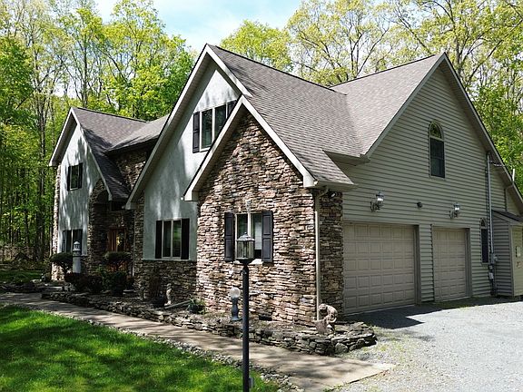 Indulge in unparalleled luxury and comfort in this stunning estate. Spanning 3,971 sq/ft of living space (5,781 sq/ft total) and nestled on a sprawling 3.08-acre sanctuary on a private cul-de-sac, this home offers a lifestyle of refined elegance. Featuring 4 spacious bedrooms, each with ample walk-in closets, and 4 beautifully appointed bathrooms, this residence is designed for sophisticated living. The gourmet kitchen boasts granite countertops and high-end stainless steel appliances, perfect for culinary enthusiasts. Relax by the floor-to-ceiling stone gas fireplace, or retreat to the incredible primary suite with separate sitting room and his/her walk in closets. Enjoy outdoor living on the expansive composite deck, and benefit from modern conveniences like a newer super-efficient furnace, central A/C, whole-home generator, and on-demand tankless hot water. A three-car garage, large detached utility building, full finished basement, central vacuum, and UV water filtration system complete this exceptional offering. Experience the perfect blend of luxury and practicality. Located in Hidden Lake Estates, an upscale community close to everything the Lake Region has to offer. A very short drive to Lake Wallenpaupack, the quaint town of Hawley, restaurants and schools. Walking distance to private Hidden Lake for non-power boating recreation. This home is spectacular in every way.