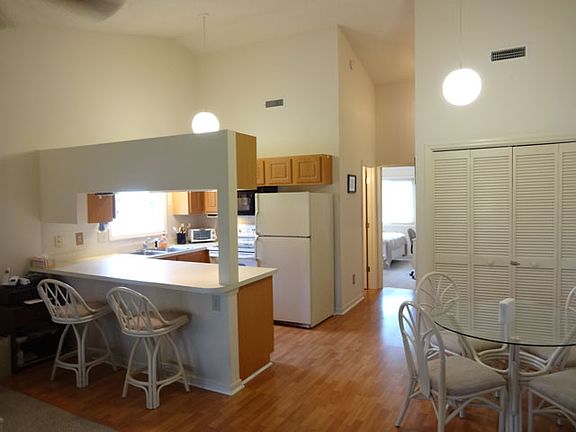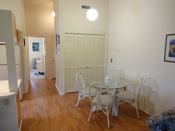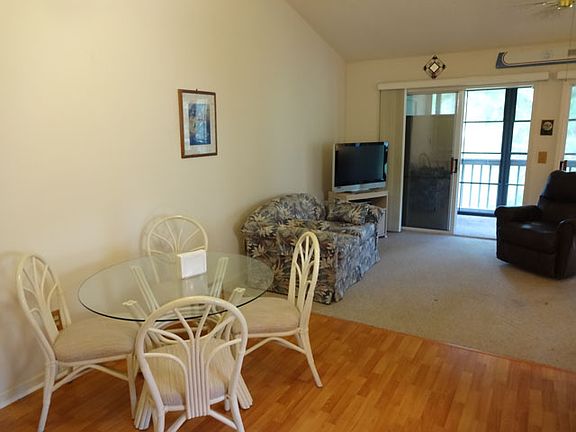 Enjoy maintenance-free living in this furnished, golf course condo in Island Green. Functional open floor plan features vaulted ceilings in bedroom, kitchen, dining area and living room. This well-maintained unit includes laminate wood flooring, outside attached storage and a spacious screen porch that was transformed into a 3-season room complete with sliding vinyl panels. Community amenities include outdoor pool, golf course with Pro Shop and dining area, community amenity center that includes indoor pool, Jacuzzi, fitness center, meeting space and tennis courts.