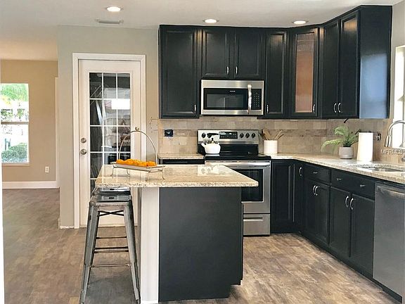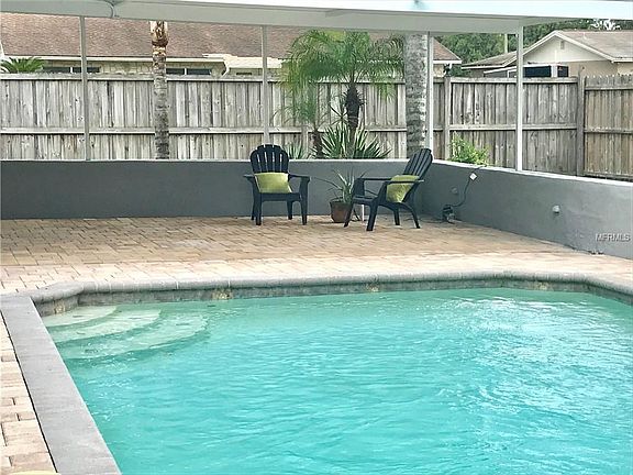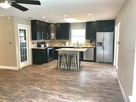 BACK ON MARKET...FINANCING FELL THROUGH...Appraised over list price. Beautifully remodeled property with POOL within Pasco County and Great Schools. NO HOA/CDD on a CORNER LOT. NEW WATERPROOF Vinyl Flooring throughout your Living Spaces, Hallway, and Bathrooms. NEW carpet in the Bedrooms. NEW paint inside and out plus NEWLY Textured Walls Inside. Kitchen has 42 in Espresso Cabinets, NEW Stainless Steel Appliances, NEW Travertine Backsplash, NEW Granite and Center Island that seats 4. Matching Espresso Cabinets and Granite in both Bathrooms. The Master Bath has a Large Luxurious Travertine Tiled floor to ceiling Shower plus dual sinks. The Lanai is Spacious. Close to everything and has a BRAND NEW ROOF. Make an appointment to view today. Shed and Decking are Sold "As Is" and Agent is also an Owner. Room Measurements to be verified by Buyer. Seller to replace french doors to pool.