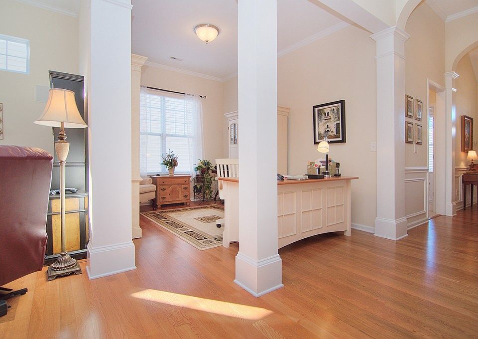 Gorgeous ranch with second floor bed/bonus. Tons of upgrades - crown molding, recessed lighting. Gleaming hardwood floors throughout main living area. Carpeted bedrooms. Open kitchen offers granite countertops, tile backsplash, cabinets w pull out drawers, dual ovens, & breakfast bar. Great room with gas fireplace. Spacious master with tray ceiling. Master bath with dual sinks, separate shower/tub & large walk in closet. Screened porch. Oversized patio w gas line to grill. Garage w utility sink. Home warranty included.