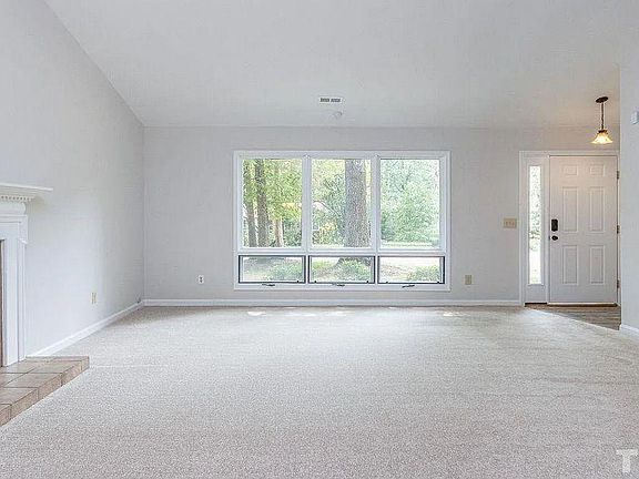 Move-in ready immediately a ranch with new flooring, interior paint, and smooth ceilings. Large, light filled, living room complete with cathedral ceiling and wood burning fire place. The kitchen features 42" cabinets and an eat-in, peninsula island. Master suite with large, walk-in closet and private bath. Very quiet, quarter acre property with private fenced backyard, patio, oversized storage shed and high speed AT&T fiber internet. Located in Durham within the Parkwood neighborhood with lake and playground. Short commutes to Southpoint mall, UNC, Duke and RTP. Only 4 mi away from upcoming "Apple" headquarters!