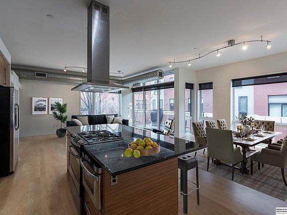 **Showings Begin Friday, February 14th!** Welcome to SoMa Lofts #205. A spacious corner loft located in the vibrant SoMa neighborhood. You're just steps away from the Old Market's charming cobblestone streets, eclectic boutiques, renowned restaurants, and lively entertainment scene. Step inside and be greeted by an open and airy floor plan, accentuated by the expansive windows of a corner location filling the loft with natural light. Wood floors create a warm and inviting atmosphere, while the spacious layout is ideal for entertaining and relaxation. The kitchen is a dream, featuring a large food prep island perfect for gathering and creating meals. This exceptional loft also includes the coveted convenience of two heated garage parking spaces, ample storage and a large balcony. Move-in ready and feeling spic & span with a fresh coat of paint! A great opportunity and value for an excellent urban residence.