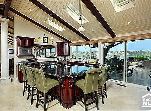 Stunning single level front row Dover Shores Mini Estate . This 5 bedroom 4.5 bath home features significant upgrades and a private casita. No detail has been overlooked in this comprehensive remodel. Spacious, open floor plan with a separate master suite. Fabulous chef's kitchen with granite countertops, mahoghany cabinets, 6 burner Viking range, Subzero refrigerator, and center island. Vaulted tongue and groove beamed ceilings, travertine floors, 3 fireplaces and dramatic courtyard entry. Fabulous front row views overlooking the Back Bay and Fashion Island lights. Association amenities include 3 private beaches equipped with 2 volleyball courts, barbeque island, picnic tables, playground, restroom and storage for handcarried boats. Lifeguard services and weekly movies provided during the summer months.