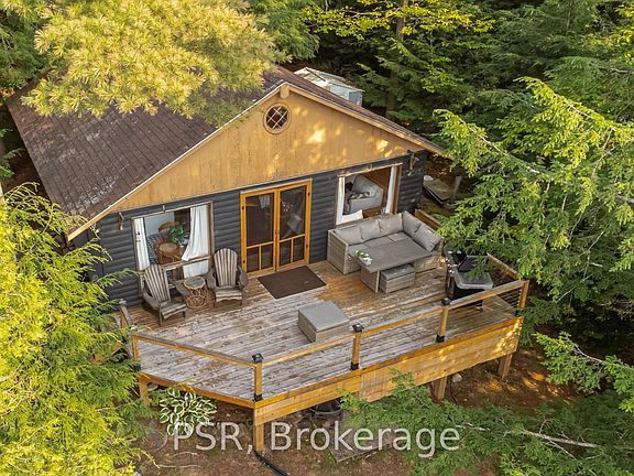 Charming 3-Bedroom Muskoka Cottage with Premium Western Exposure on Chub Lake Discover your perfect 3-season Muskoka retreat, just a short drive from Dorset and Baysville. This inviting 3-bedroom cottage sits on a beautifully treed lot with 115 feet of pristine western shoreline. With both deep and shallow entry from natural rock outcroppings, its ideal for swimmers of all ages. Soak in breathtaking sunsets from the dock or deck, where the coveted western exposure guarantees golden afternoons and evenings on the water. Inside, the open-concept layout showcases soaring vaulted ceilings with exposed beams, hardwood floors, and warm pine accents. Sunlight pours through the windows, creating a cozy and relaxed atmosphere. Recent updates include an upgraded kitchen, a brand-new electrical panel, a new deck, a rebuilt crib dock, and a new water pump- providing comfort and peace of mind for years to come. Set slightly on a point and surrounded by mature pines, this property offers exceptional privacy. The cottage comes fully furnished and move-in ready, complete with appliances, a canoe, and an aluminum fishing boat with electric trolling motor- everything you need to start enjoying Muskoka immediately. A freshly updated 3-piece bathroom complements the three bedrooms, offering the perfect space to host family and friends. Spend your days on the water, exploring nearby Crown land and extensive trail networks, or visiting local highlights such as Dorset's Robinsons General Store and Lookout Tower. Algonquin Park is also only 30 minutes away. Dont miss this opportunity to own a true Muskoka getaway....sunset paradise included
