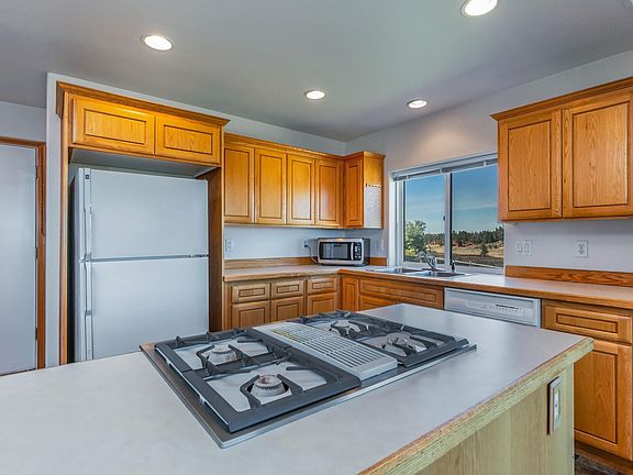 Rare opportunity to own a gorgeous single-level home perched on Redmond's Dry Canyon Rim with stunning canyon views. Set on a spacious 0.5-acre cul-de-sac lot, this home is filled with natural light thanks to large windows and upgraded blinds throughout. Step onto the expansive deck directly from the living area or primary suite and enjoy peaceful mornings watching canyon activity. Private backyard is fully fenced with sprinklers—perfect for relaxing or entertaining. Additional features include forced air gas heat, central A/C, 220V in the garage, attic ladder to storage, and direct access to the Dry Canyon trail system via Paul Hathaway Memorial Park. Incredible location close to all Redmond amenities. This one-of-a-kind property offers both comfort and a connection to nature—don't miss it!