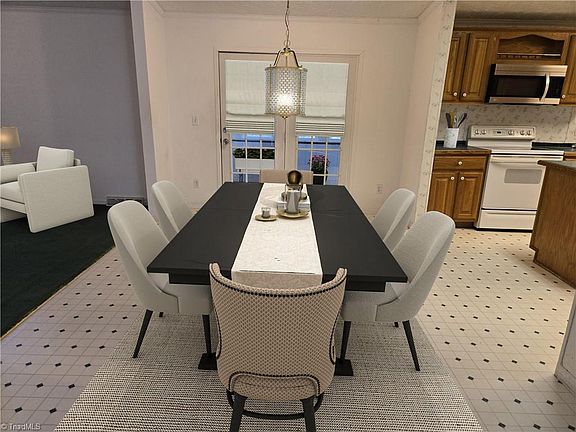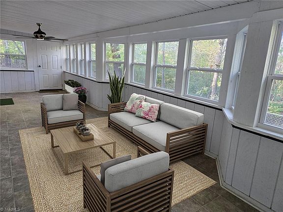 Come see this nice 2000+sq. ft. home centrally located 10 minutes from downtown King, 35 minutes from Winston Salem, Mt. Airy or ( Kernersville - using the new 74) which sits on a private lot with seasonal mountain view sitting on 1.72 (mostly fenced) acres featuring one level living, Huge primary suite with sitting area, large bath and walk-in closet. The kitchen/dining/great room with fireplace are open concept for great family time. The roof approx.7 years old, HVAC approx.3 yrs. The enclosed porch has windows surrounding the whole porch offering great natural lighting. The outside of the home has many perennials that offer some color throughout the spring and summer and tree lined driveway offering fall color. As an added plus is the large gazebo with electricity for family/social gatherings. The road frontage is lined crepe myrtles. There are apple and pear trees also on the property. Make your appointment today to view this nice property. Agent is one of the heirs/owners.
